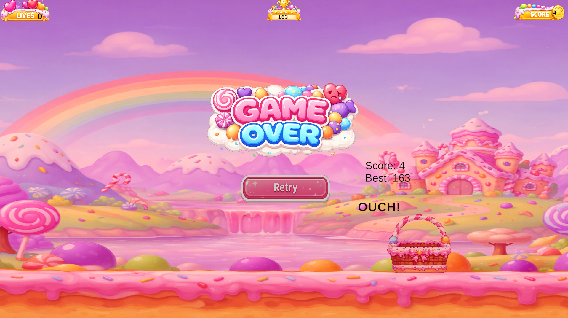 Candy Rain is a fast-paced arcade game where you move left and right to catch falling candy while dodging dangerous ones. As the game speeds up, your reflexes will be pushed to the limit.